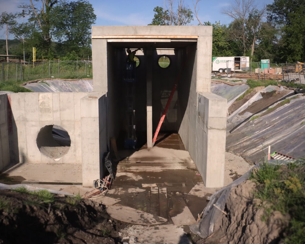 Nearby Flat Creek is prone to flash floods when the Meremac River gets too high. The $7 million flood wall and pump station will attract new business and residents who have stayed away due to expensive flood insurance in Old Town.