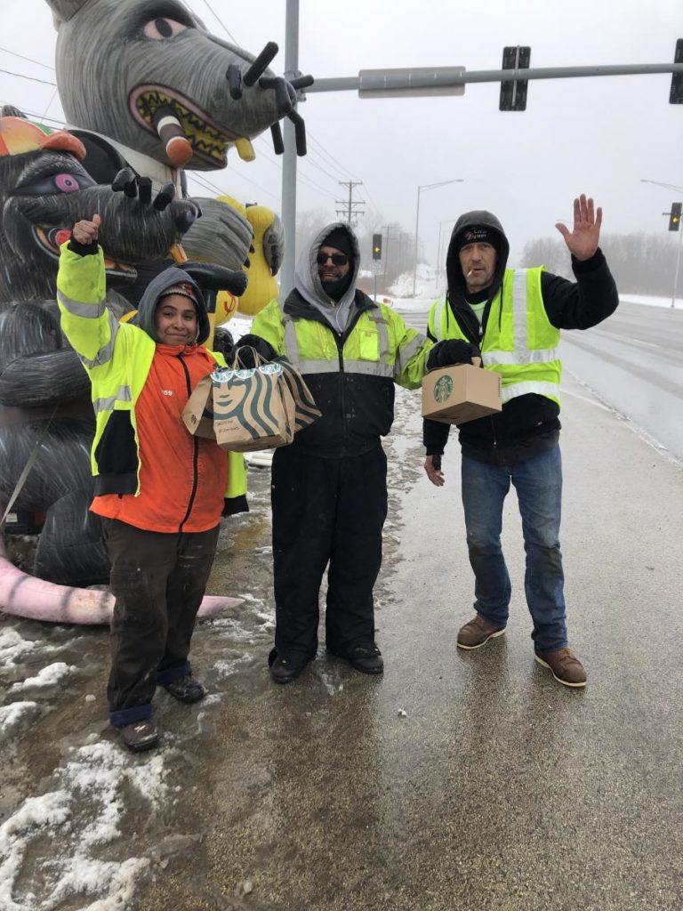 Braving the weather and showing support were: Left to right: Rose P. Rodriguez, Local 54 Erica Ramos, Local 54; Suzanne Ness, District 2 McHenry County Board Members; Mary Sizer, Local 58; Derek Iwaniuk, Business Representative, Local 1889; Patrick Rhea, Local 250; Ryan Tiffany, Local 1889; Monty Hayes, Local 250; Steve Ortega Hughes, Local 1889; Wesley Wisz, Local 1889; Magali Castro, Local 1889 and Kevin Sipple, Local 1889. A big shout-out to passerby “Christina” who sent sandwiches and drinks by Uber Eats to the crew on site – how nice! Thank you for your support! Thank you all for such a great turnout!