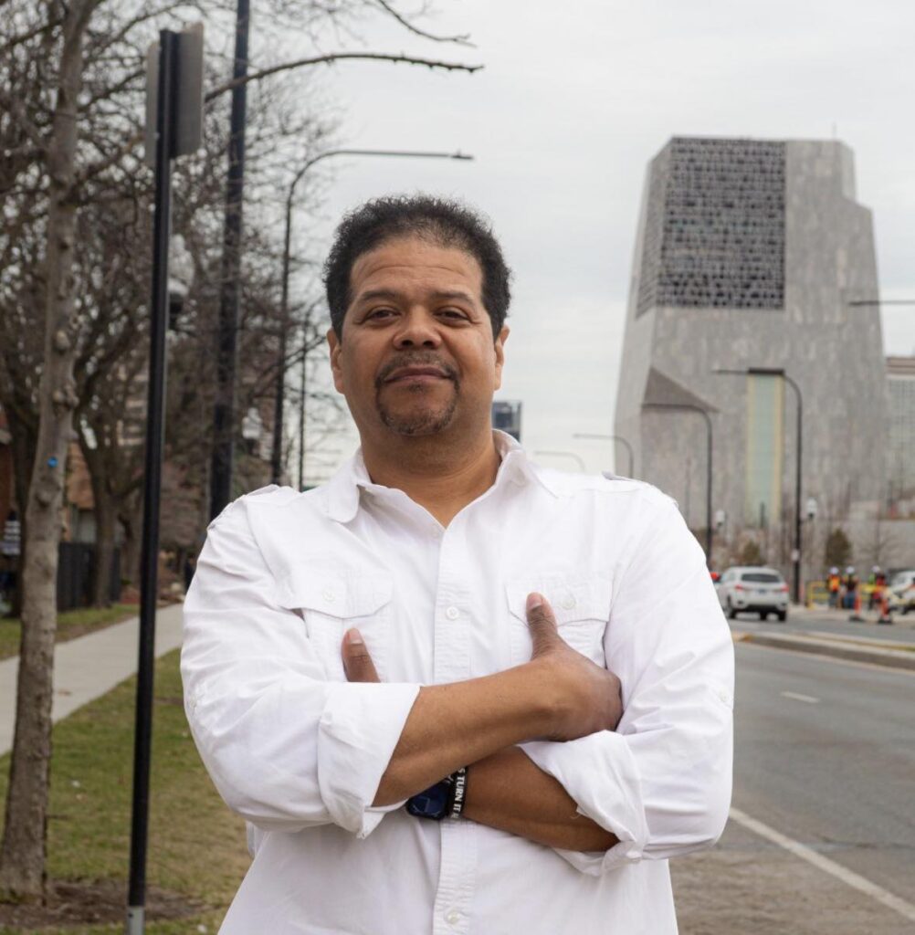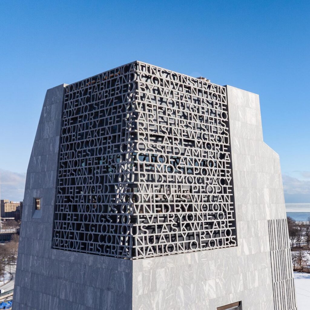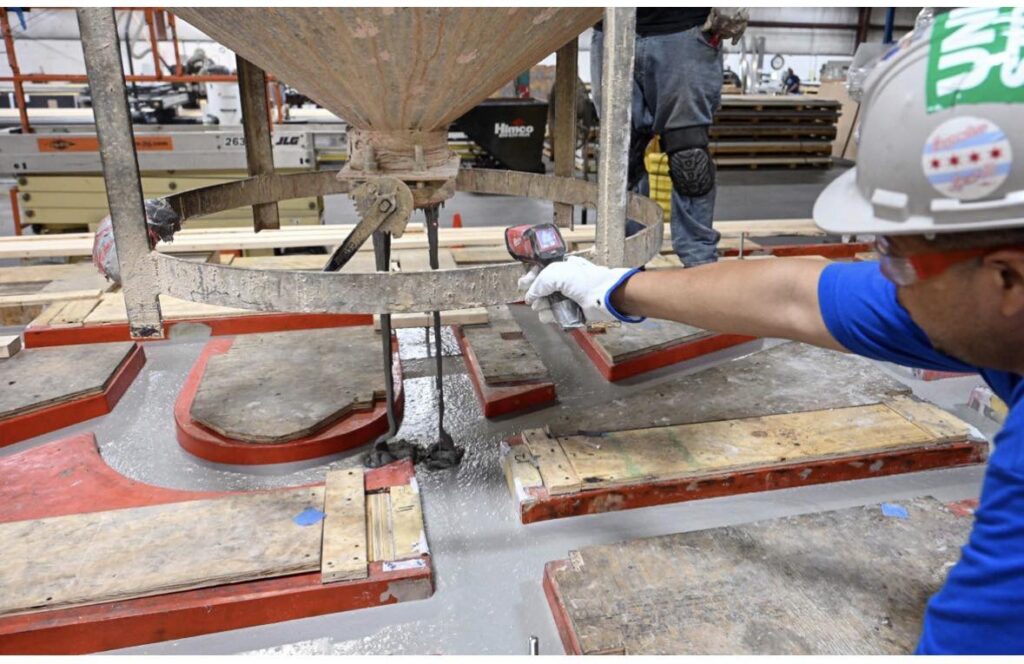 Carpenters Local 10 apprentice Lewis DeJan, is helping mold the monumental 39 ultra-high-performance concrete panels that wrap around the top of the Obama Presidential Museum.